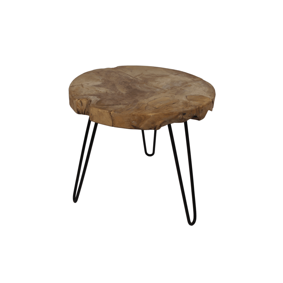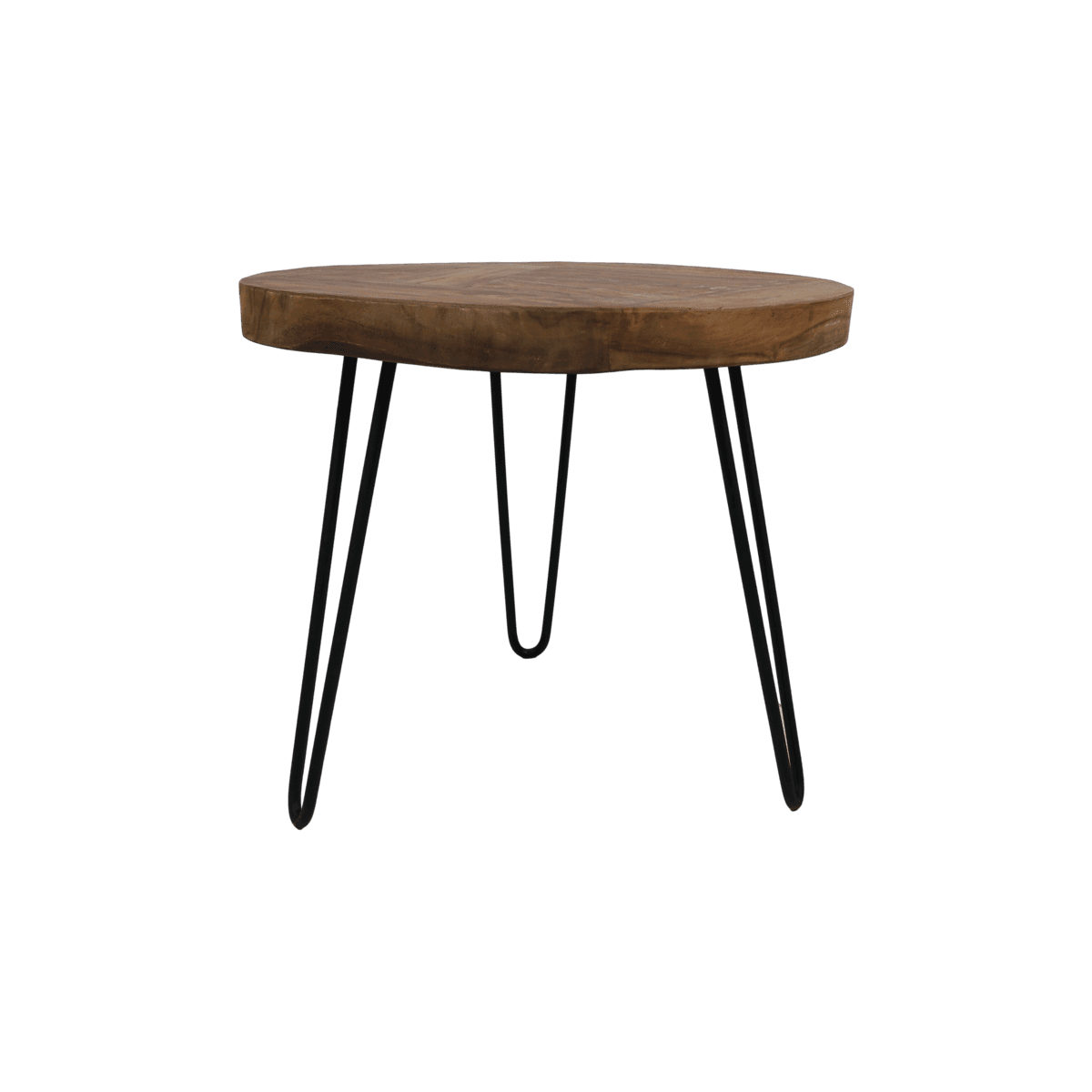Beistelltisch mit Haarnadelbeinen – natur – Teakholz