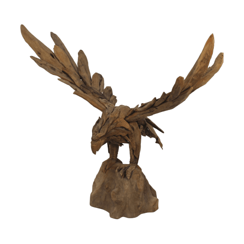 Ein echter Blickfang für Ihr Zuhause! Dieser dekorative Adler ist aus natürlichen Teakholzstücken handgefertigt. Dies verleiht dem Bild einen einzigartigen, rustikalen Charme. Bitte beachten Sie: Jeder Adler ist ein absolutes Unikat. Die Farbe und die Formen des Holzes können je nach Exemplar variieren.