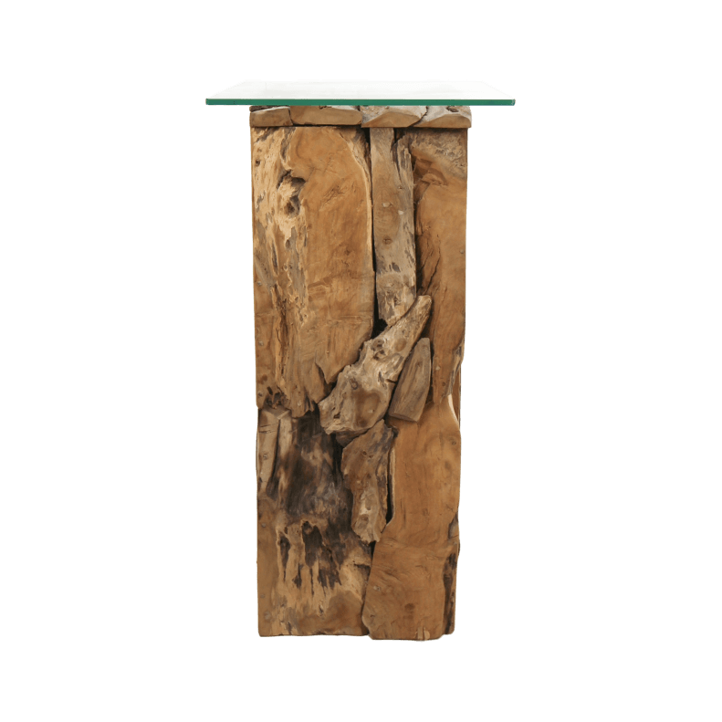HSM Kollektion-Säulenwurzel mit Glasplatte-30x30x80-Natur-Teak