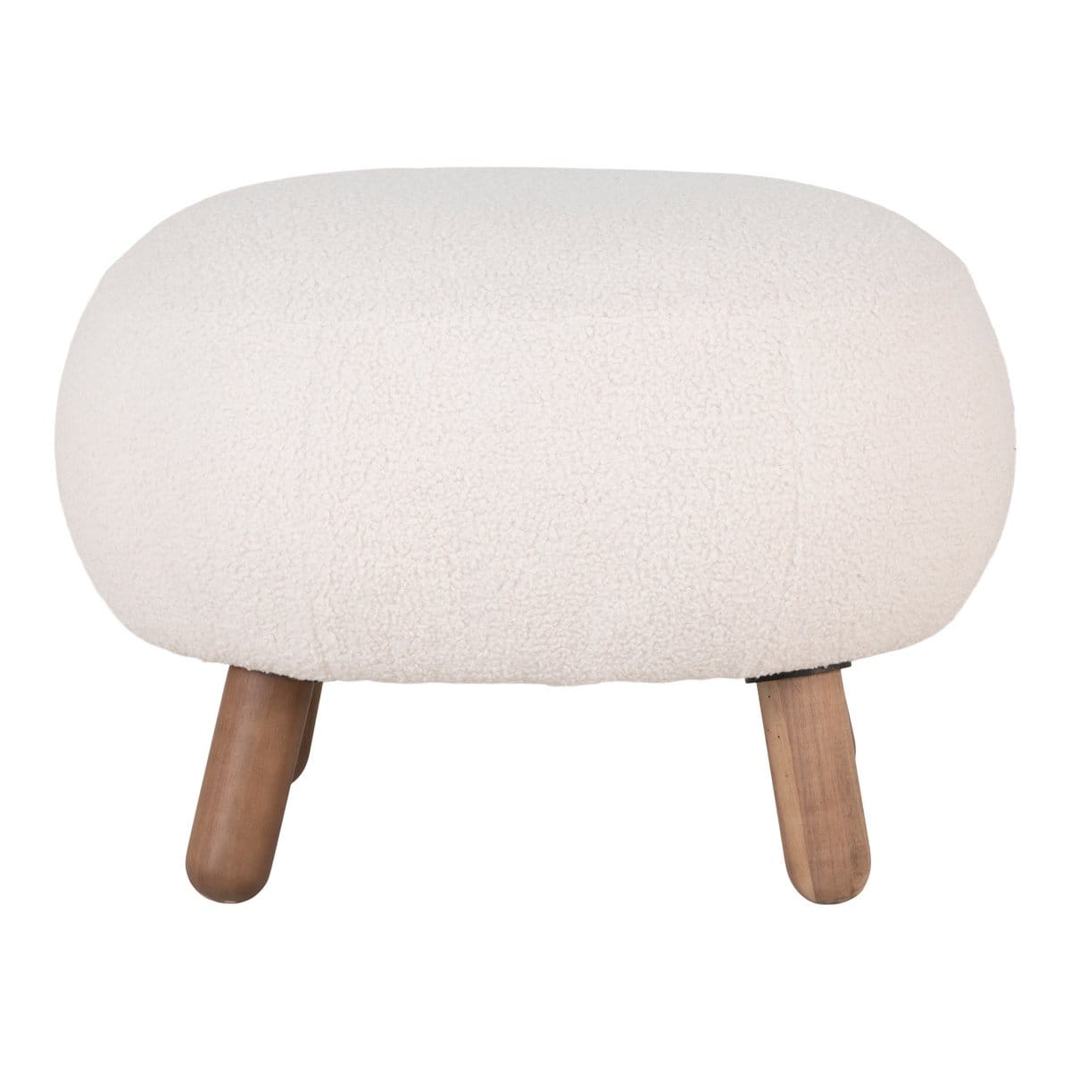 Fußstütze aus künstlichem Lammfell, weiß mit Beinen in Walnussoptik