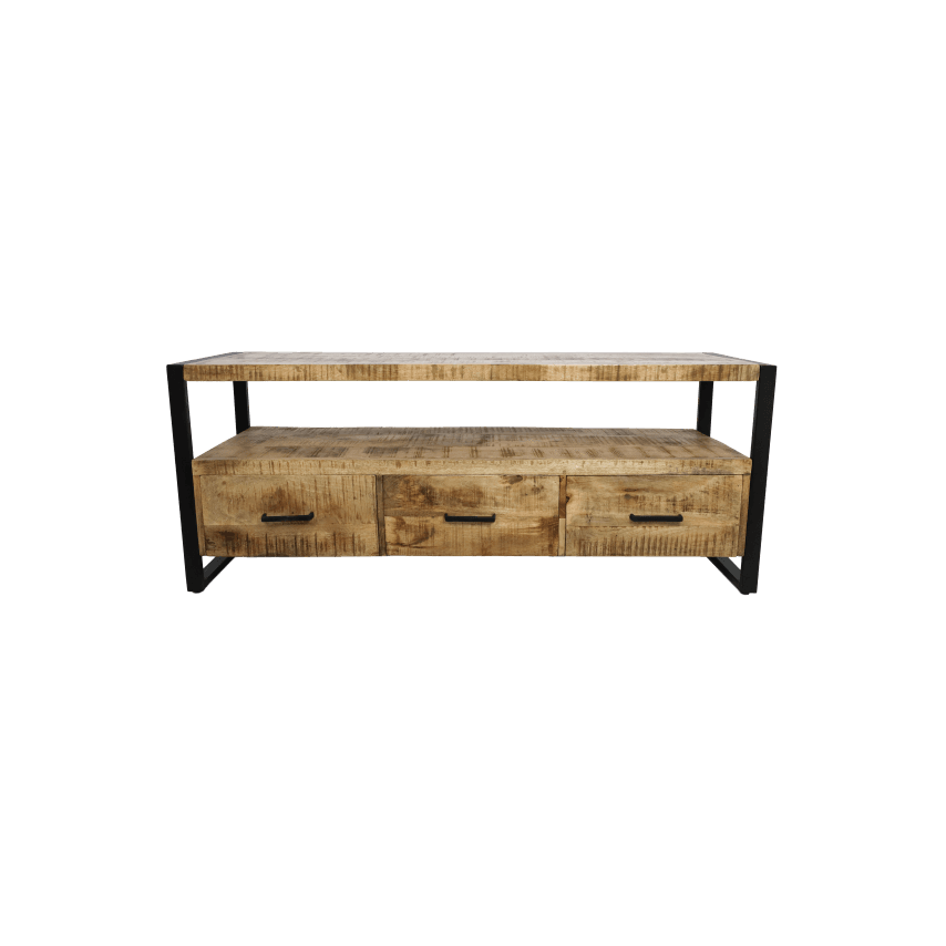 HSM Collection-Tv Möbel Havanna 3 Schublade-150x45x60-Natur/Schwarz-Mango/Metall