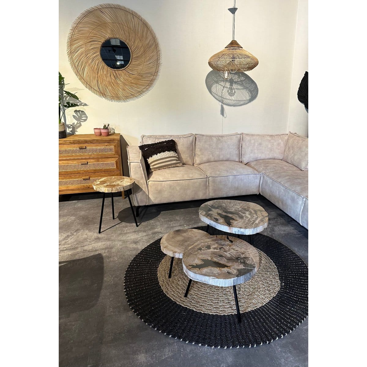 Diese schönen Beistelltische sind ein Blickfang in Ihrem Wohnzimmer. Diese Tische sind in verschiedenen Größen erhältlich. Diese schönen Beistelltische sind wunderschön in Ihrem Wohnzimmer. Diese Tische sind in verschiedenen Größen erhältlich. Jedes Exemplar ist einzigartig in Form und Muster, was die Tische besonders verspielt macht! Die natürlichen Farbtöne in Kombination mit dem Schwarz verleihen diesem Tisch klassische Details. Das Finish der Tischplatte ist an der Seite der Tischplatte deutlich sichtbar und sorgt für einen verspielten Effekt. Kombinieren Sie diese Tische als Set oder stellen Sie sie einzeln in Ihrem Wohnzimmer auf. Ein echter Blickfang!