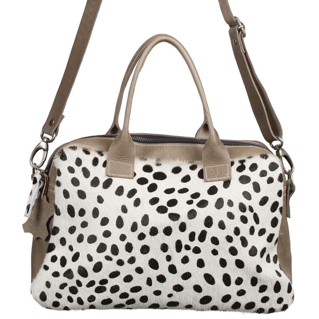Schoudertas Milou van Zand Leder en Dalmatiër Print Koeienhuid