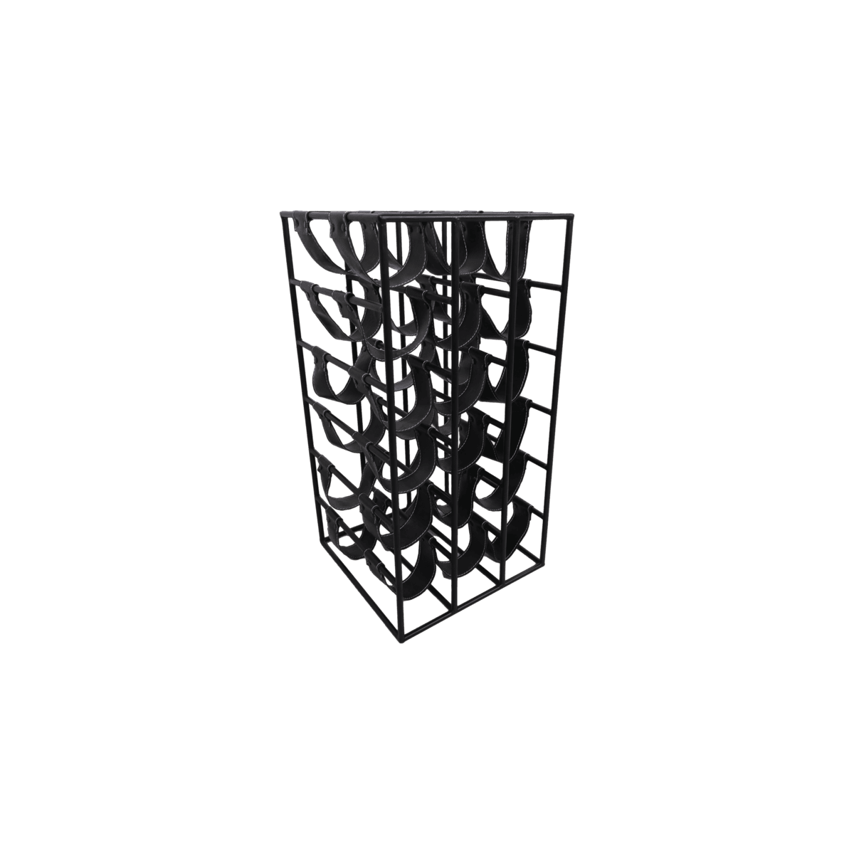 Weinregal 18 Flaschen – 33x33x64 – schwarz – Metall / Leder