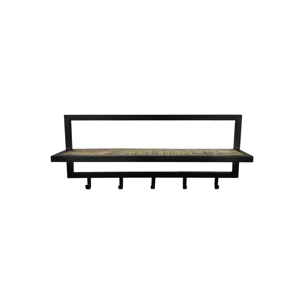 HSM Collection-Wandgarderobe 5 Haken mit Regal-66x17x28-Natur/Schwarz-Akazie/Metall